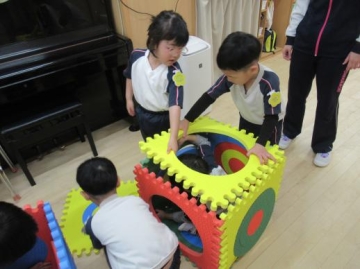 箱を作って中に入ったり、大きな家を作ったりして遊びました。