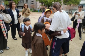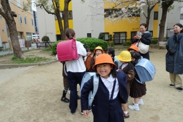 小学校の入学式の後、ランドセルに見せに来てくれました。