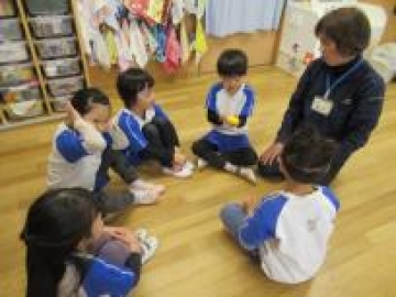 あひる組さんは、絵本「てぶくろ」の表現遊びをしたり・・
