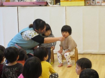 ”ぽっとん”は、みんなで手をつないで輪になり名前を呼ばれると座るのですが、