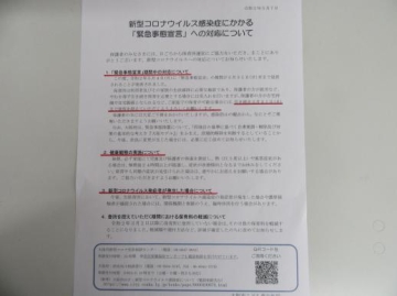 コロナウイルス感染症にかかる「緊急事態宣言」への対応について!!