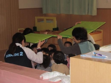 25年前の大地震の様子を写真などで視覚から子ども達に伝えました。