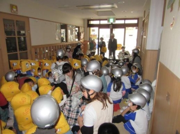 今日は、25年前の阪神・淡路大震災の地震を想定した避難訓練をしました。