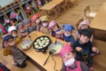 4歳児が3時のおやつ ”お好み焼き”を自分たちで作りました。