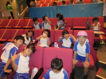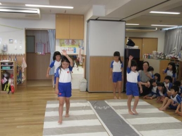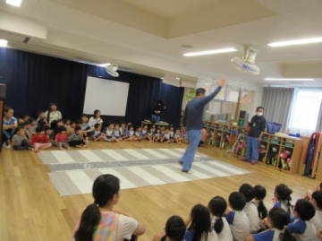 今日は、第3保育園の子ども達と一緒に10月生まれの友だちをお祝いしたり、、歌や手遊びをしたりしてお楽しみ会に参加しました。