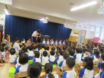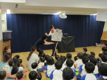 9月のお楽しみ会に全児が参加しました。9月生まれの子ども達が紹介され、インタビューに応えたり・・・保育士のマジックショーを見たり・・みんなで楽しみました。