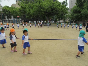 新町保育園の3歳児うさぎ組さんとすみれ組さんがお散歩交流をしました。