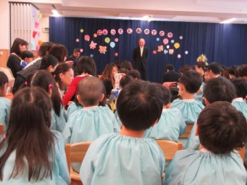 保護者や3.4歳児や来賓に見守られ、おわかれのことばと歌をうたい保育園の思い出を懐かしさや寂しさに浸っていました。
