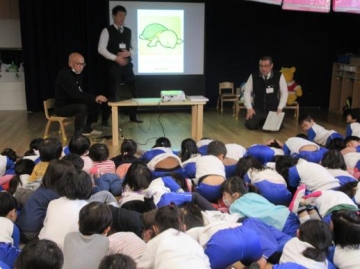 西区役所出前講座の ”防災教室” に第3保育園のいるかぐみさんと2~5歳児の子ども達が参加しました。