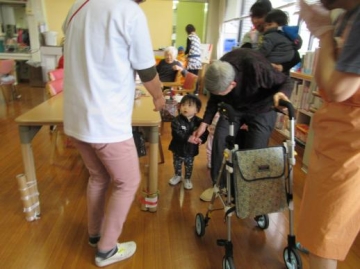 0歳児は、おばあちゃん・おじいちゃんにごあいさつをして来ました。ちょっと人見知りもあったようですが、ほっこリした雰囲気で関われました。