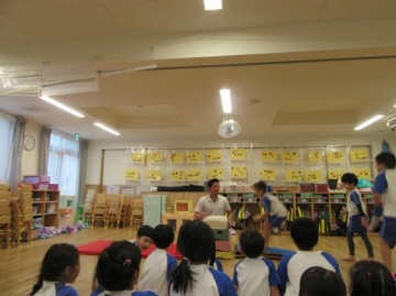 5歳児は跳び箱の跳びかたの注意する点やコツなどを教えていただきました。