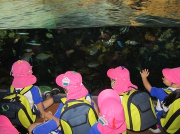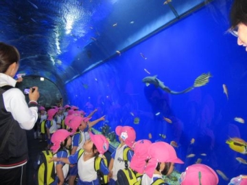 海遊館でもたくさんの魚が水槽いっぱいに泳いでいるのを興味深く眺めたり、スタンプを見つけてはおしたり・・と楽しく過ごせました。