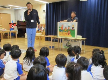 西区役所”にっしーパトロール隊”による防犯・交通安全の出前講座を2~5歳児がうけました。