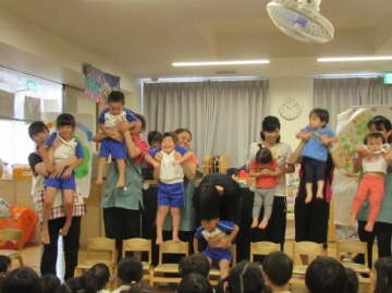 新町第2・第3保育園のこども達が集って8月の誕生児をみんなでお祝いしました。