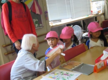 104歳・98歳・・かなりご高齢の方もおられ握手したり、ゲームをされているのを覗き込んだり・・・