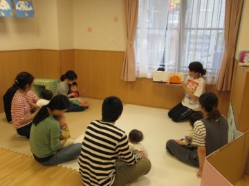 0歳児は、新町カーニバルは参加しなかった為、今日はお父さん・お母さんと一緒に保育室でふれあい遊びを楽しみました。