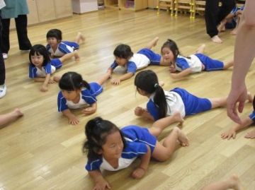 4歳児・5歳児は体操専門の先生から運動遊びを教えて頂き、体感を鍛える身体遊びをしました。