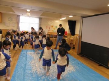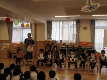 1月生まれの友だちを手遊びやお正月遊びをしてみんなでお祝いしました。