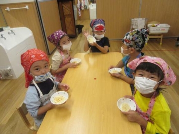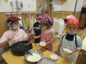 3時のおやつ”ホットケーキ”をさくら組みがホットプレートで焼きました。
