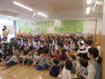 今日は、おたのしみ会に0~5歳児のこども達が集まりました。