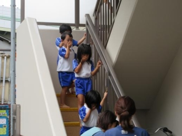 0歳児は玄関から、1~5歳児は各階の外非常階段から新町西公園へ避難しました。