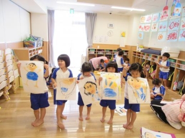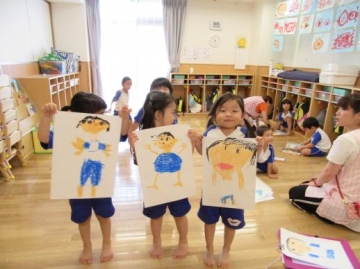 プール開きのときは、水がかかるのがいやだった子・・・顔付けがいやだった子・・・などいましたが、今では友だちの刺激をいっぱい受けてプール遊びが大好きになった子ども達です。