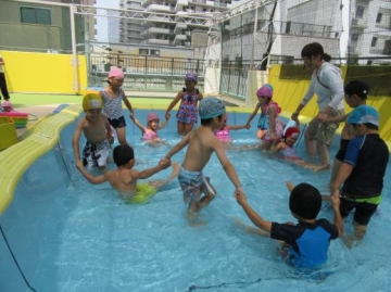 一緒にプールに入って遊んだり・・・給食を食べたり・・・昼寝をしたり・・・3時のおやつもたべたり・・・とほとんど一日を共に過ごしました。