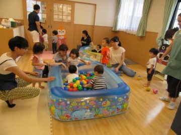 10日(月)からプール開きを前に今日は4・5歳児がプールやテラスをきれいに洗ってくれました。