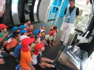 西区郵便局裏側にある”津波・高潮ステーション”へ5歳児が新町保育園5歳児と一緒に行ってきました。