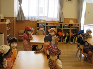 3.4.5歳児の子どもたちが嬉しそうに「ハロ~!」と挨拶をしていました。
