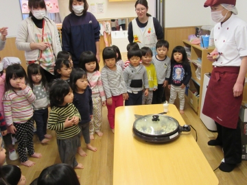 2・3・4・5歳児の子どもたちがホットプレートに注目!