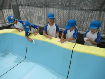 来週月曜日からのプール開き!の前に5歳児ひまわりぐみさんがプールの掃除をしてくれました。