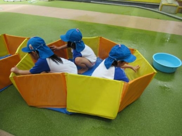また、乳児組さんが入るビニールプールや水遊びのおもちゃ等きれいにこすってくれていました。
