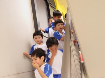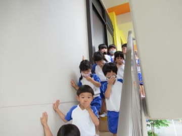 大きいクラスは、火災時は口を手で押えて避難していました。今までの習慣をしっかり覚えていました。