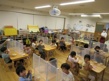 おもちゃの片付けやエプロン付けなど普段とはまた違った姿を見せてくれていた子ども達・・・