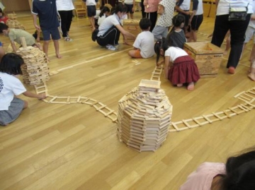 高く作った塔を友達とくっつけたり・・していっぱいのカプラを使って遊びをしました。