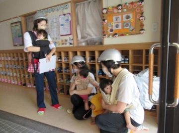 屋外への避難は、幼児は外階段、乳児は内階段から避難しました。