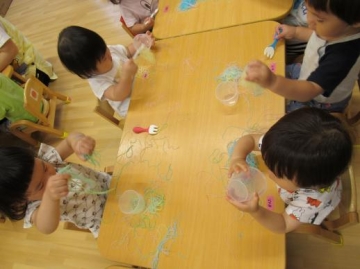 感触の面白さや、不思議さを感じて楽しんでいた子ども達です。
