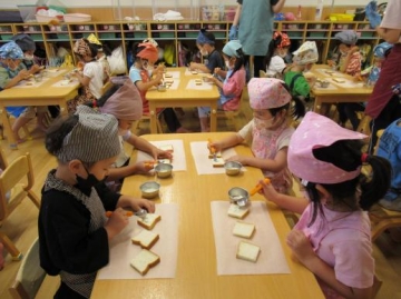 4辺が5cmの食パン3まいにぬるのに、ゆっくり丁寧にしている子ども達はとても真剣で一生懸命でした。