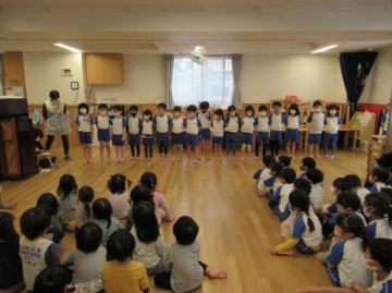 今日で、ひまわり組さんが最後ということで、みんな集まってもらいお別れ会をしました。