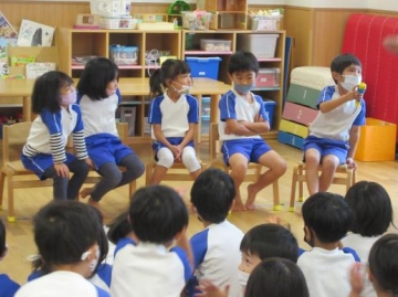 乳児組さんは、ひとりでしたが、前に出ても泣くことなくマイクをしっかり持っていました。