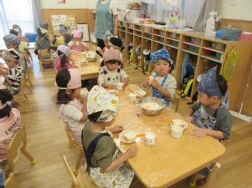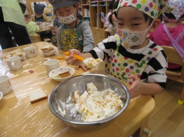 2021年10月21日(木) 食育・すみれ組、フルーツサンドづくり!!