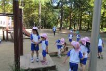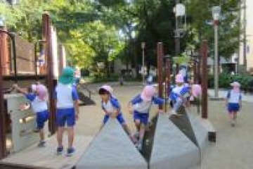 公園では、鬼ごっこをしたり固定遊具でたのしくあそびました。
