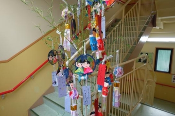 七夕の飾り付けを