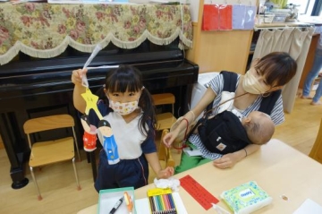 七夕の飾りつけを