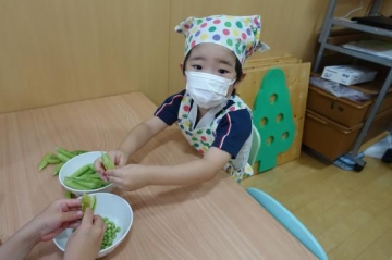 頑張って豆とりしました!