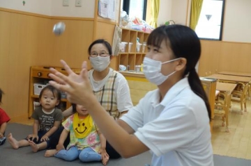 絵本読みをし、新聞紙を使い、