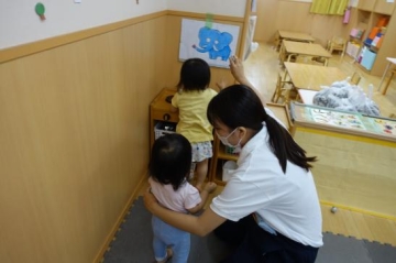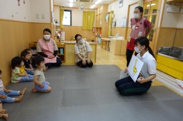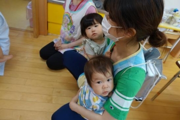 さくらんぼぐみ(1歳児)の園児に