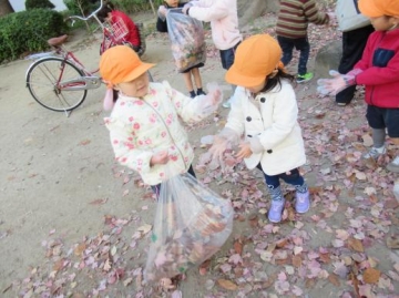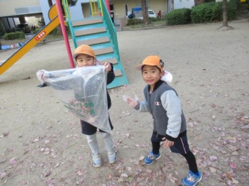 枯葉をお友だちと一緒にあつめました。