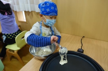 『レーズン入りホットケーキ作り』